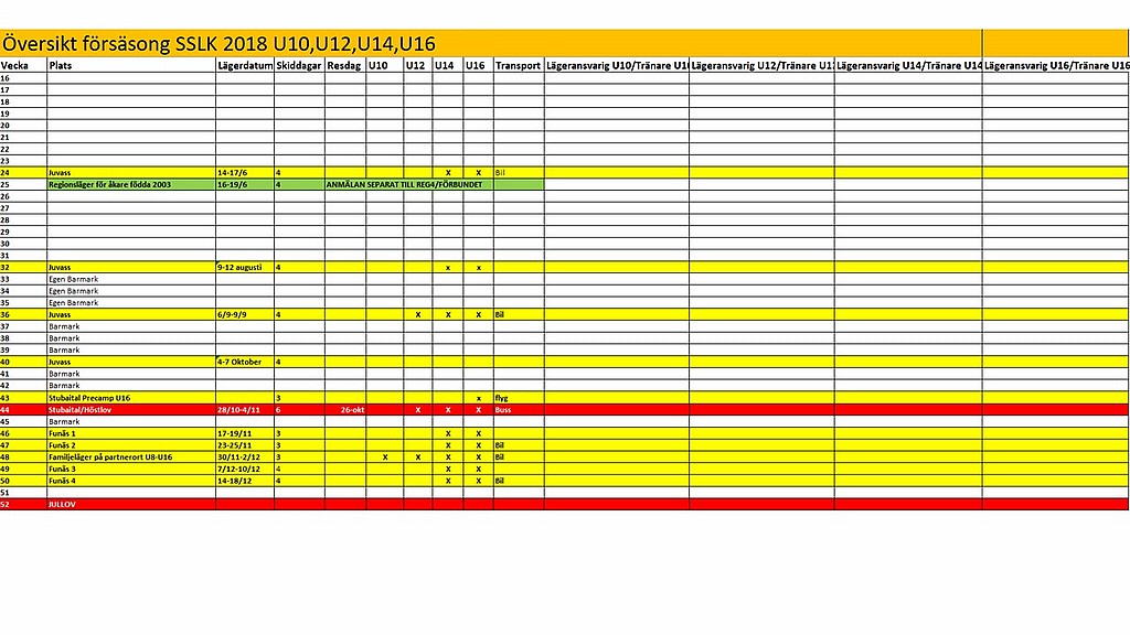 I bifogad fil finns ett förslag till en försäsongsplan 2018/2019. Inom kort kommer det skickas ut ett formulär för föranmälan till ett antal läger. Denna föranmälan kommer inte vara bindande, utan fungera som en termometer så vi kan se intresset, om vissa läger skall strykas, samt skapa ett underlag så vi vet ungefär vilken mängd boende som behövs, antalet tränare, backutrymme osv. Efter det, kommer planen uppdateras, arbetsgrupper tillsättas för att genomföra planen. MER INFO OCH BAKGRUND KOMMER DELGES PÅ 50-ÅRS FESTEN LÖRDAGEN DEN 5E