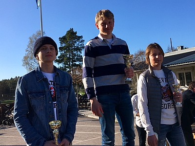 Sedan delades det ut många pokaler för fina resultat i Saltis Cup samt KM för grupperna U10 dam/herr, U12 dam/herr, U14 dam/herr, U16 dam/herr samt Masters. Vi saknade ett pris, det för BÄSTA KOMPIS. Så till nästa år måste vi alla hjälpas åt med nomineringar till det priset!