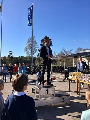 Ordförande Håkan öppnade prisutdelningen med resultaten i tävlingen mest sålda pins, tillsammans med Peter Heuman. Fina priser delades ut för en aktivitet där intäkterna oavkortat går tillbaka till barnen i olika former. GRYMT JOBBAT GUSTAV KLING som vann och gick hem med en Apple Watch av senaste modell. I år gick pengarna som kom in till en efterlängtad tidtagarutrustning. Detta kommer vi fortsätta med nästa säsong och då med ännu bättre resultat och uppslutning.