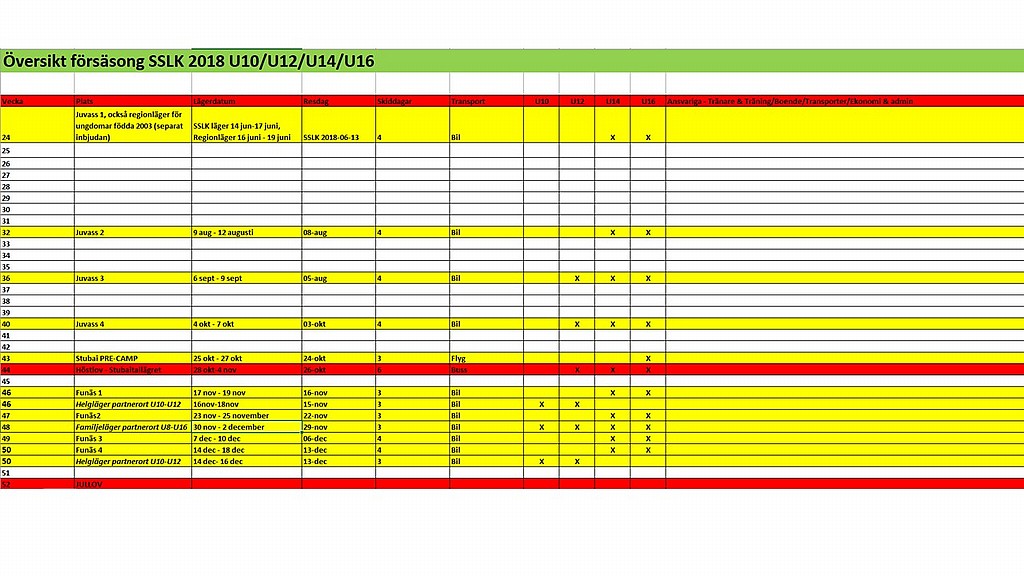 I bifogad bild finns klubbens förslag till försäsongsplan 2018/2019. Föranmälan är inte bindande, utan fungerar som en termometer så vi kan se intresset, om vissa läger skall strykas, samt skapa ett underlag så vi vet ungefär vilken mängd boende som behövs, antalet tränare som krävs, backutrymme osv. För att få ekonomi på Juvasslägren kommer det att krävas att vi har minst 10 tränande barn.