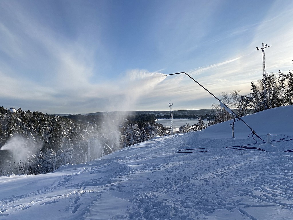 Familjebacken igång och vi producerar trots temperaturen bra med snö. YRs prognoser är de som stämt bäst och vid -3 till -4 så